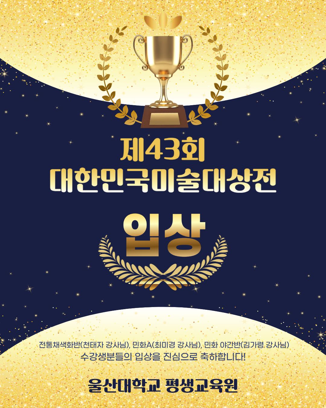 | 2025년 제43회 대한민국미술대상전 수강생 입상 소식 | |||||